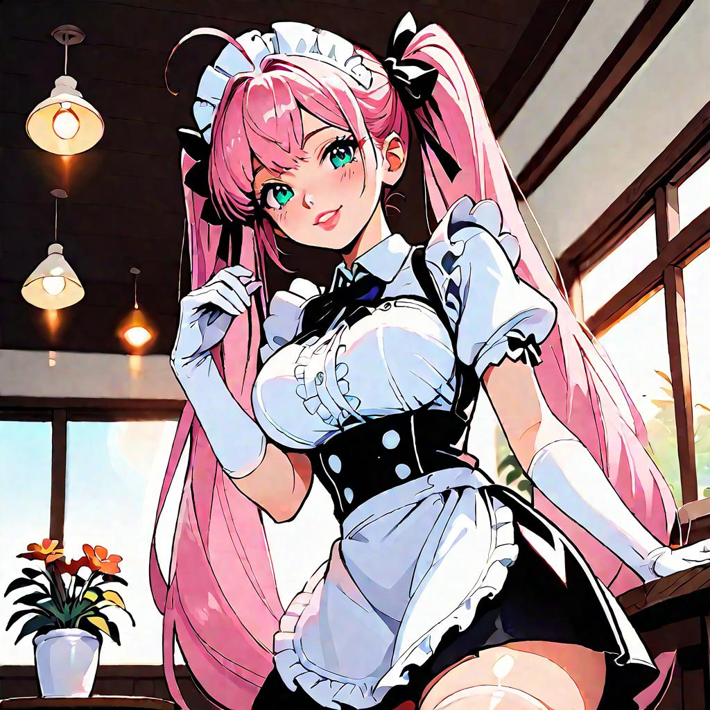 Anime Maid in Purple Dress at Night