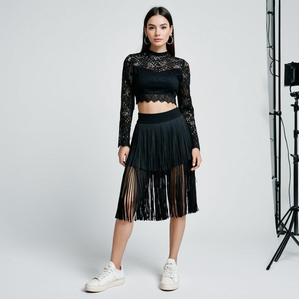 Contemporary Chic Woman in Mustard Top and Gray Skirt