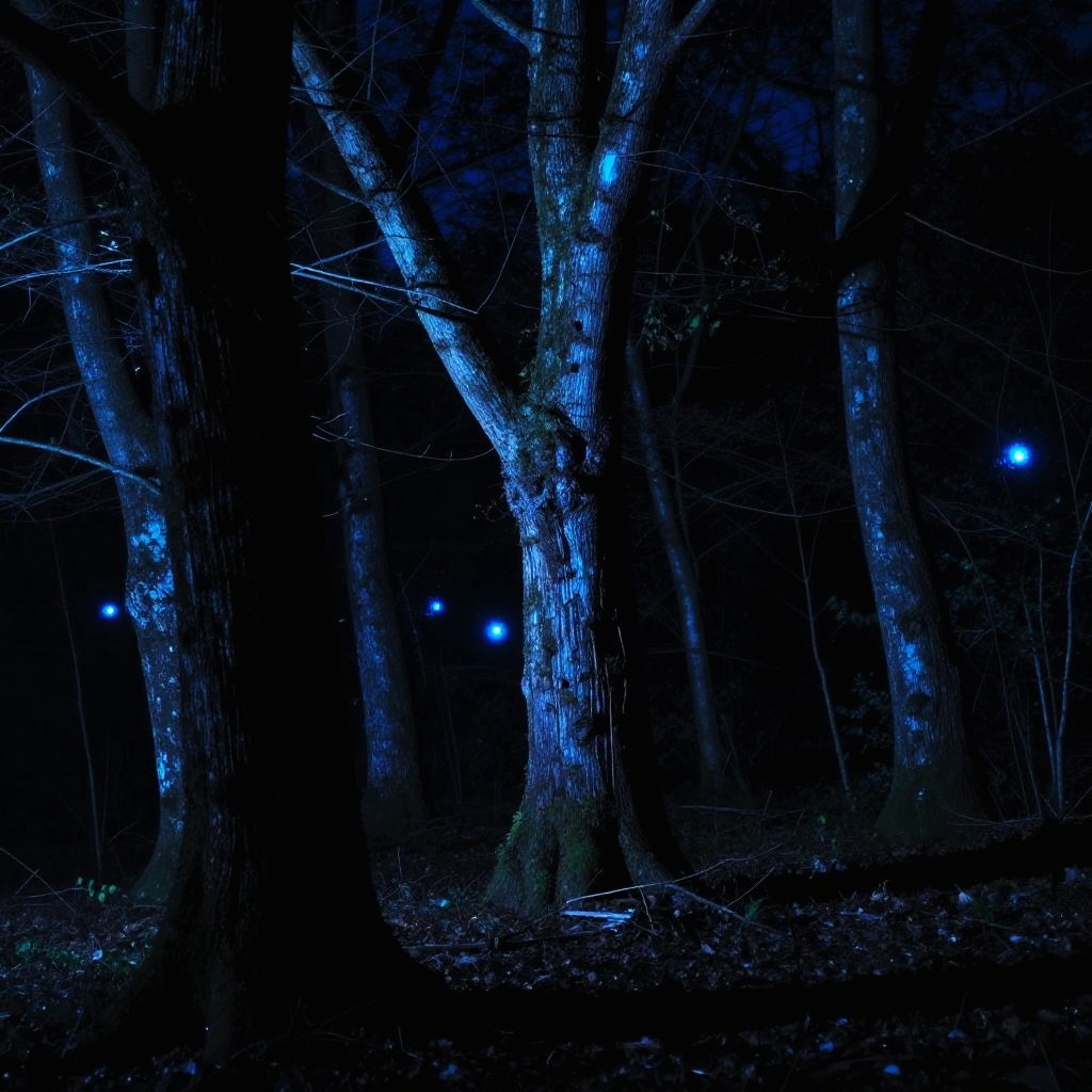 Glowing Blue Eyes in Dark Forest