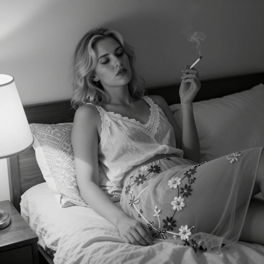 Blonde Woman with Cigarette in Black Dress