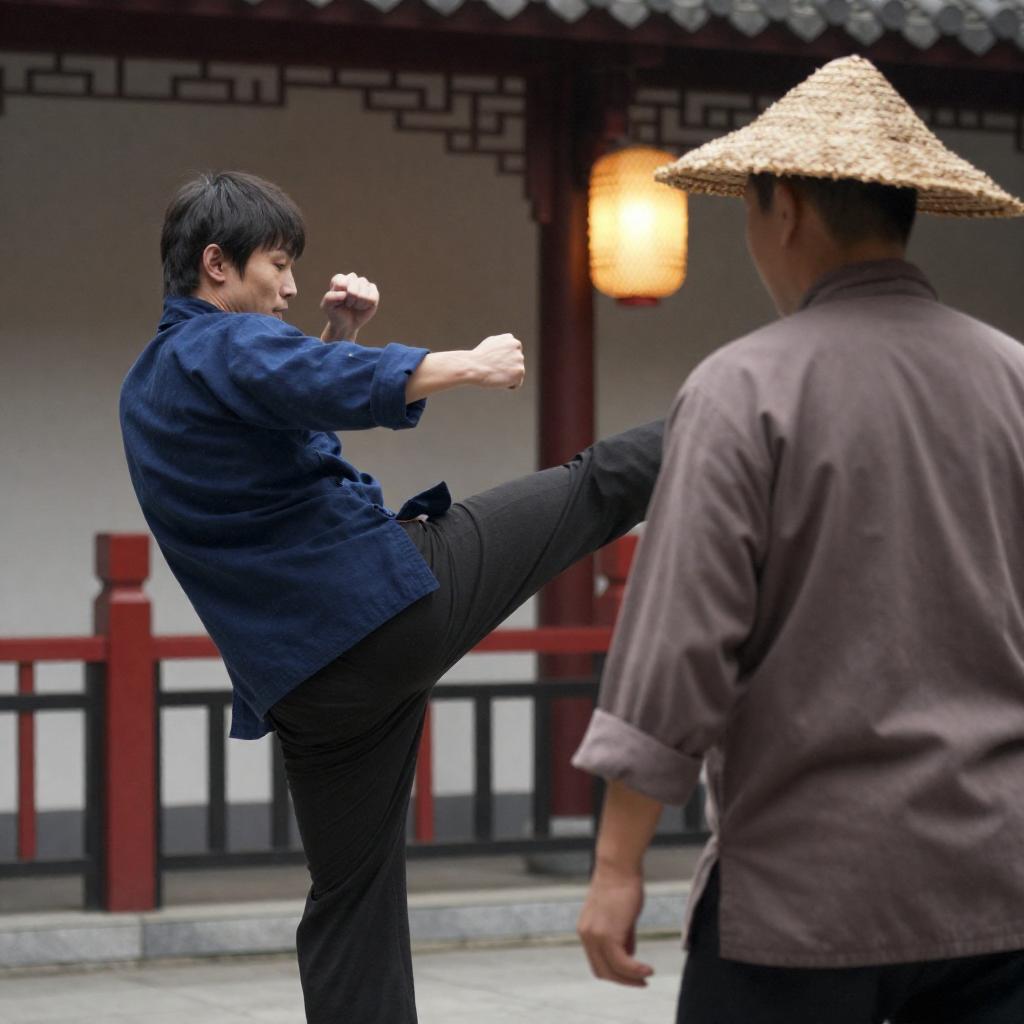 Dynamic Martial Arts Routine in Bright Sunlight