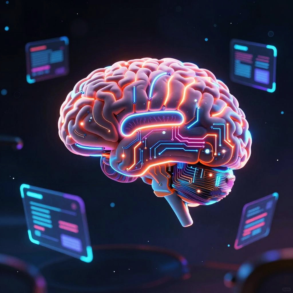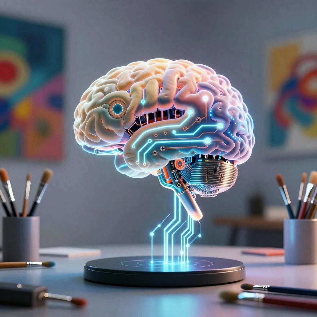 Glowing AI Brain Creating Digital Art