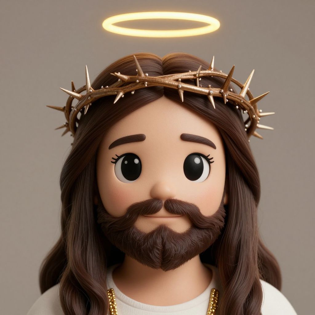 Kawaii Jesus Christ with Crown of Thorns and Halo
