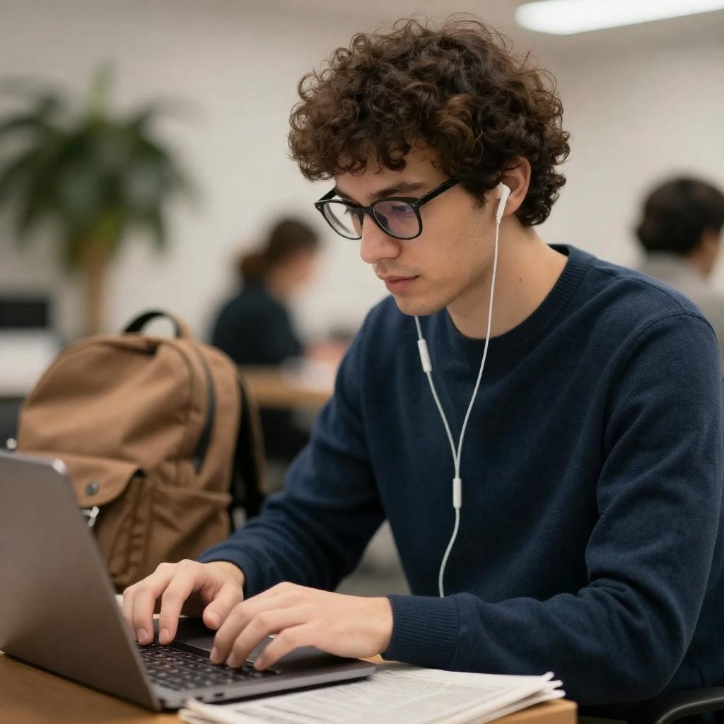 Asian Man Writing at Desk with Lamp