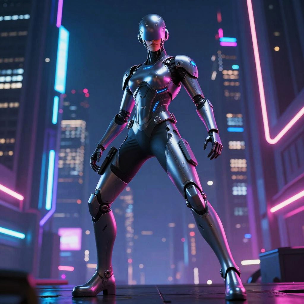 Futuristic Cyberpunk Soldier with Halberd