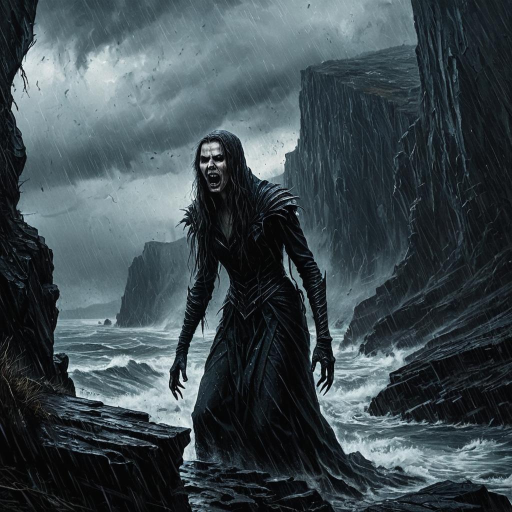 Undead Warlock with Glowing Tome in Dark Battlefield