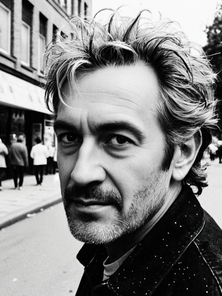 Man with Salt and Pepper Hair, candid outdoor street photo, natural daylight