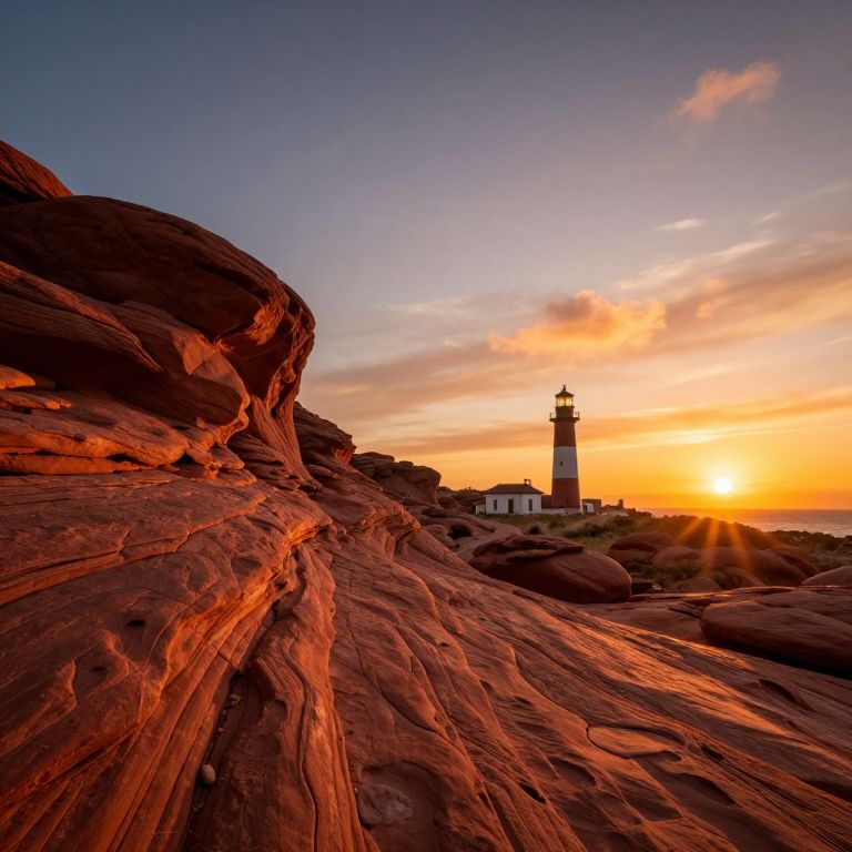 Sunset Lighthouse on Red Sandstone Cliffs