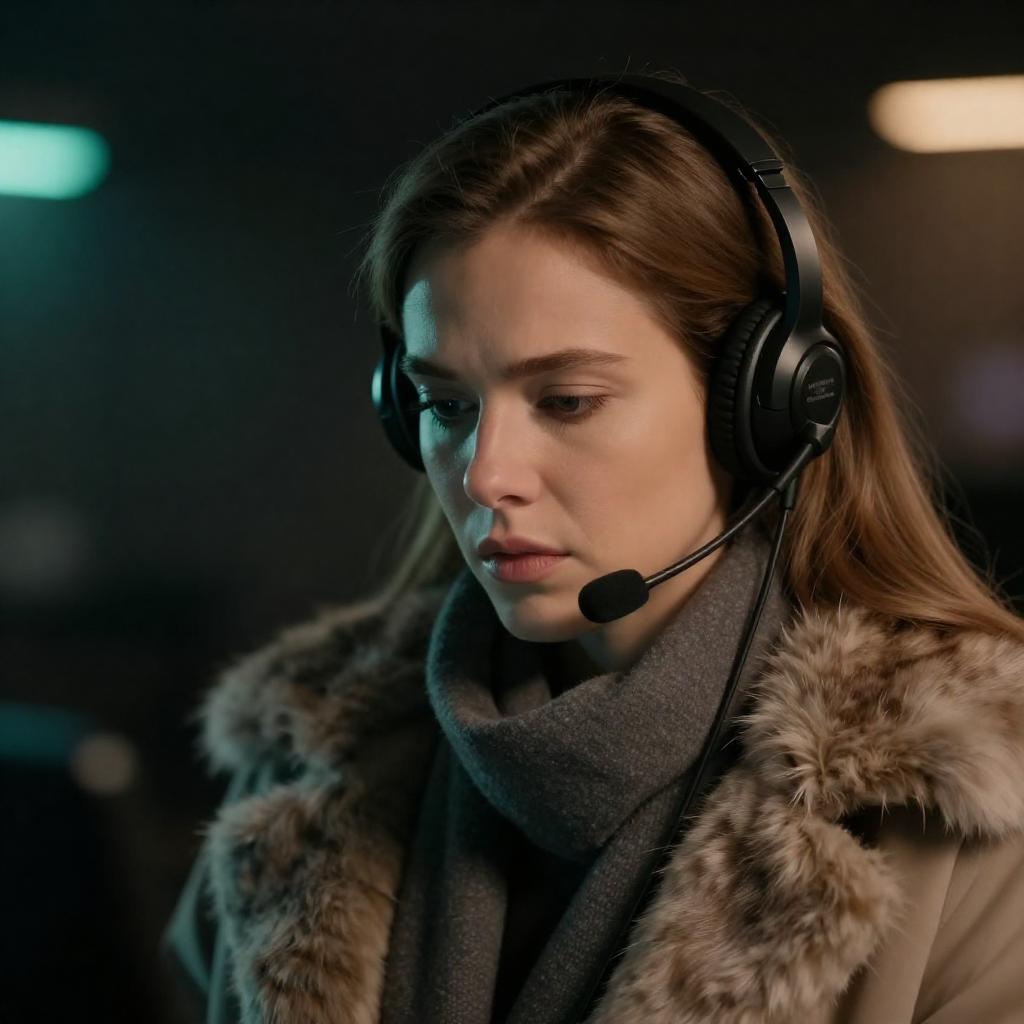 Female Pilot in Dimly Lit Cockpit
