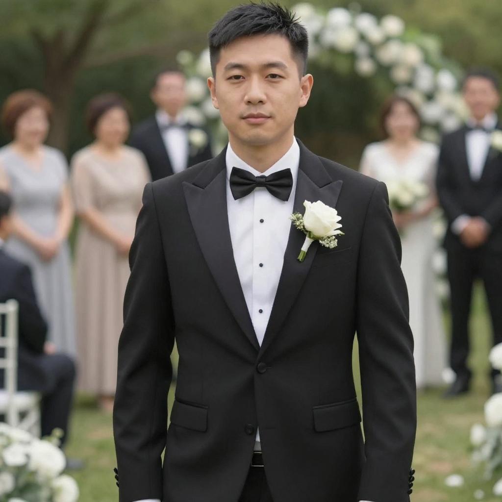 Elegant Asian Groom in Outdoor Wedding