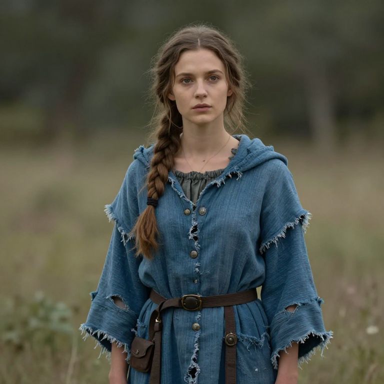 "Fragmentation the lonely cartographer, female in frayed blue robes, fantasy character portrait, photorealism, Photorealism"