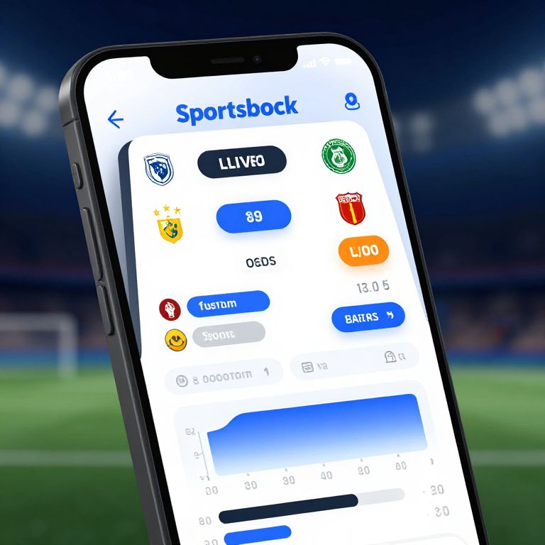 Tipico sportsbook app interface on a smartphone screen, displaying live football match odds, user-friendly design, bright and engaging color scheme, sport icons and dynamic charts, realistic digital art style.