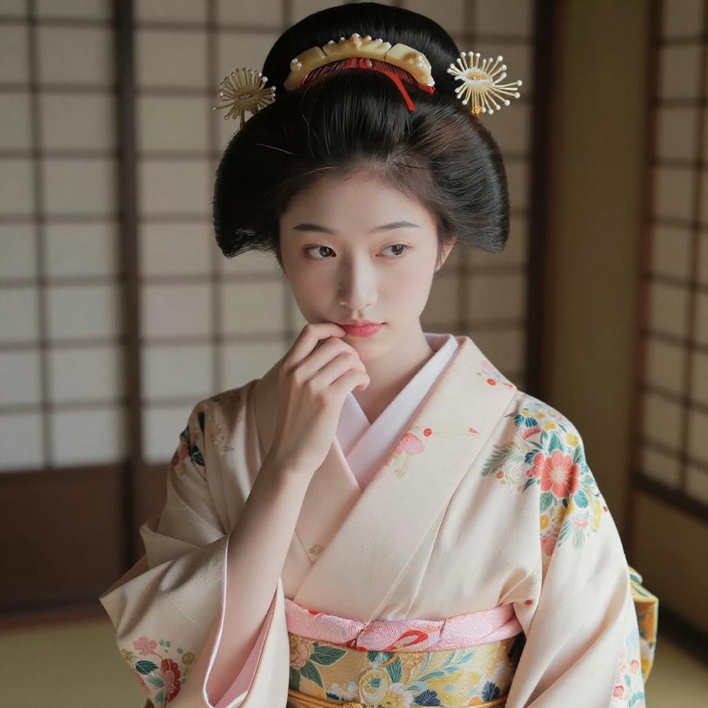 By Jeremy Lipking, by Antonio J Manzanedo, realistic photo, masterpiece, highest quality, high quality, (detailed face and eyes:1.1), asian girl, kimono, geisha, shy, suggestive, geisha prostitute, oiran, beautiful kimono, kimono room