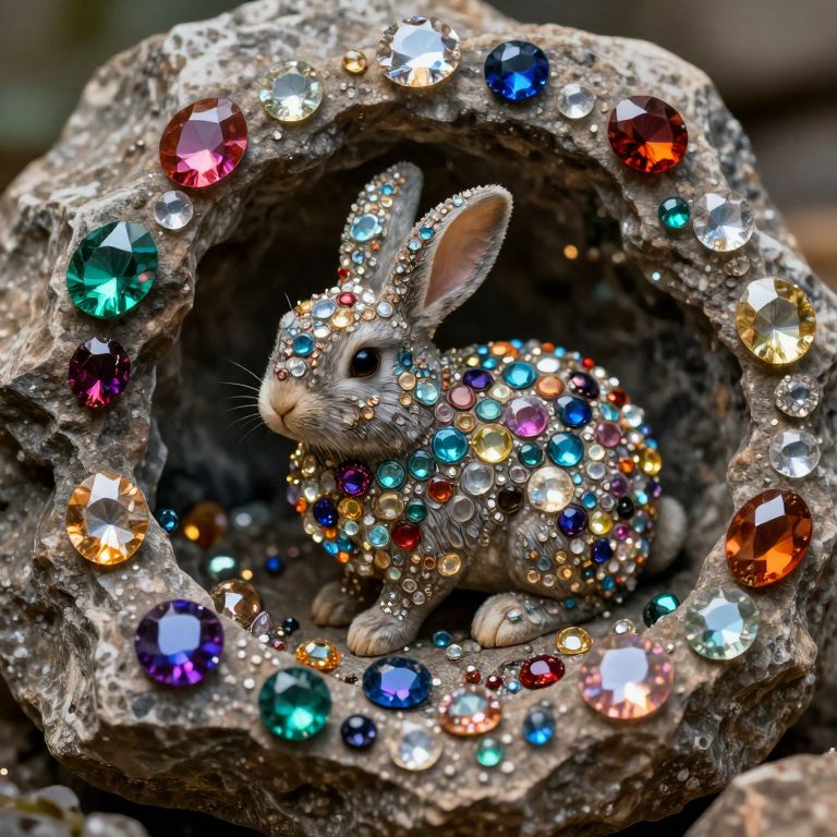Professional, bold colors, photography, HDR, a close-up image of a snail with a beautifully intricate shell adorned with various precious gemstones, The shell features a mix of sparkling diamonds, vibrant emeralds, deep blue sapphires, and rich red rubies, each carefully embedded into the spiral pattern, The snail is in a lush garden setting, with soft sunlight filtering through leaves, casting a gentle glow on the jeweled shell, highlighting the contrast between the natural beauty of the snail and the opulence of the gemstones, The background is slightly blurred, keeping the focus on the snail's unique, gem-encrusted shell, Taken using a vintage camera, film grain, chromatic aberration