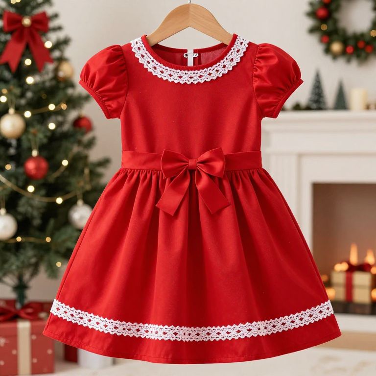 Hispanic Christmas Dress, christmas dress with a red and white trim
