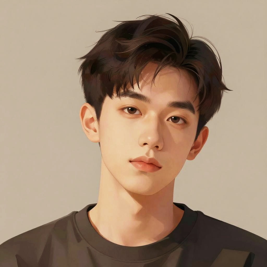 This illustration features a young man with a confident expression, set against a warm, neutral background. The style combines modern digital art techniques with a realistic portrayal, emphasizing subtle facial details and smooth lines.