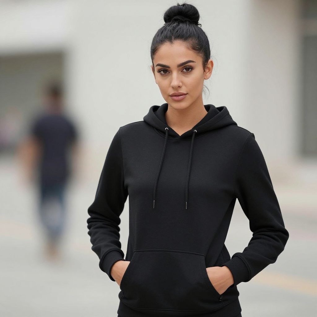 Stylish windbreaker on a European woman in a trendy city atmosphere, realistic photography, sharp focus, urban fashion style