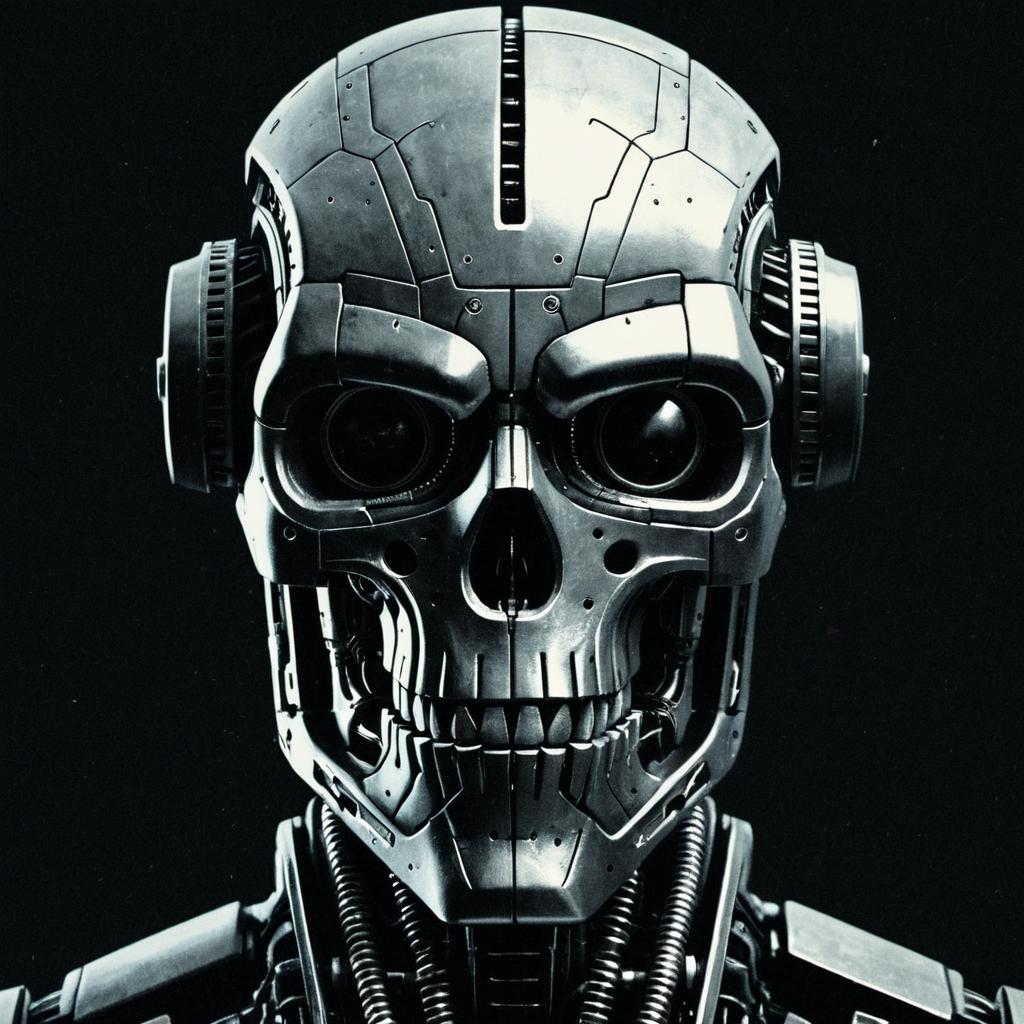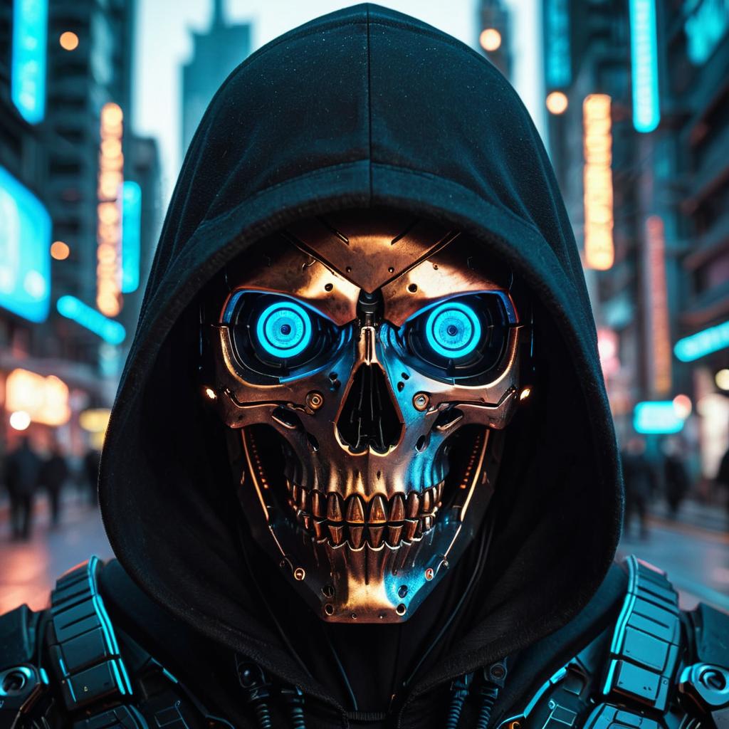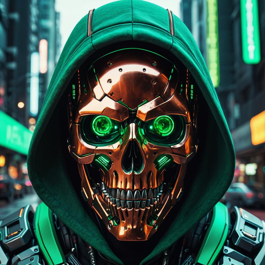 Hyper-Realistic Cyberpunk Robotic Skull Portrait