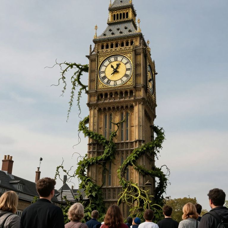 Chaotic Vines Entwined Clock Tower