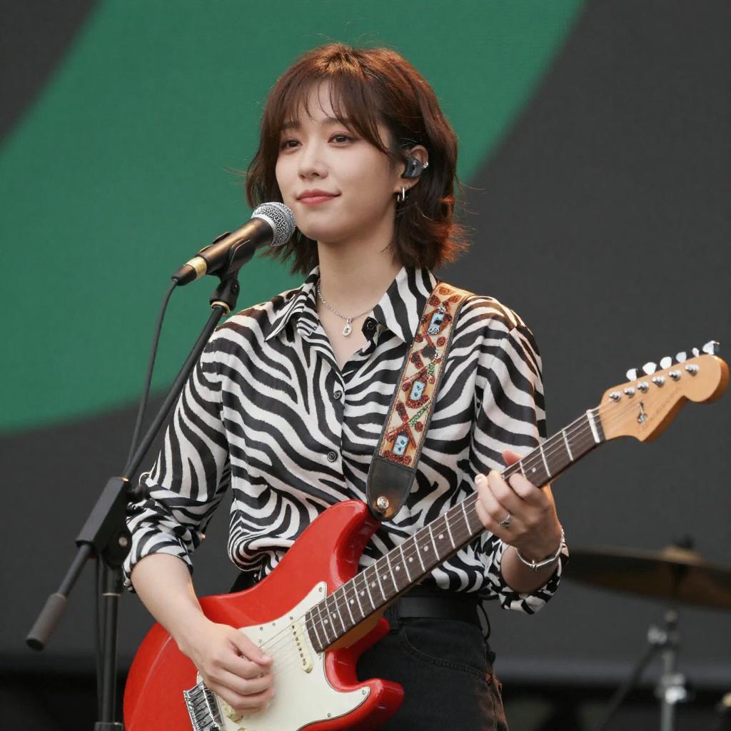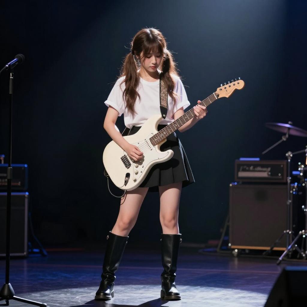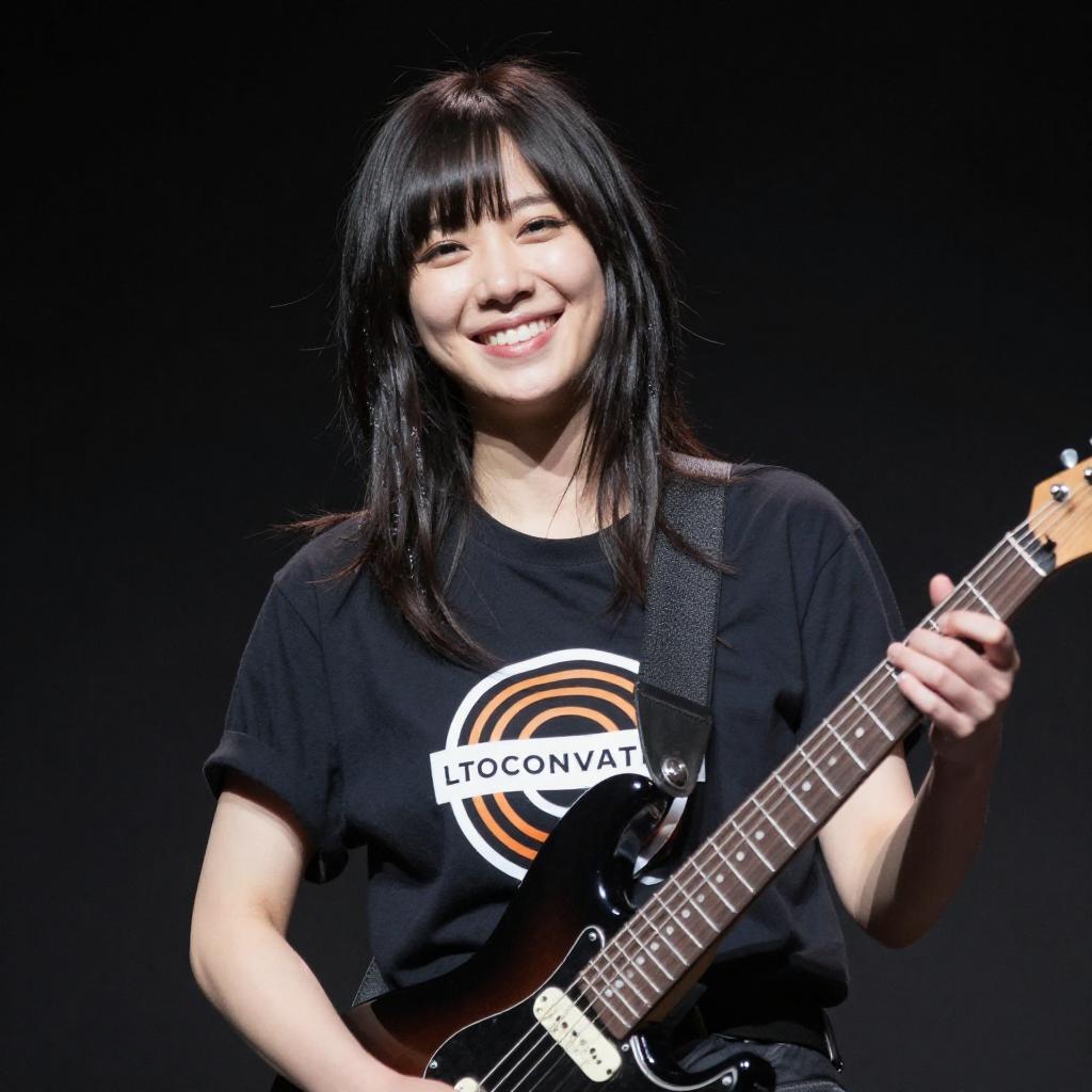 Smiling Woman Playing Electric Guitar