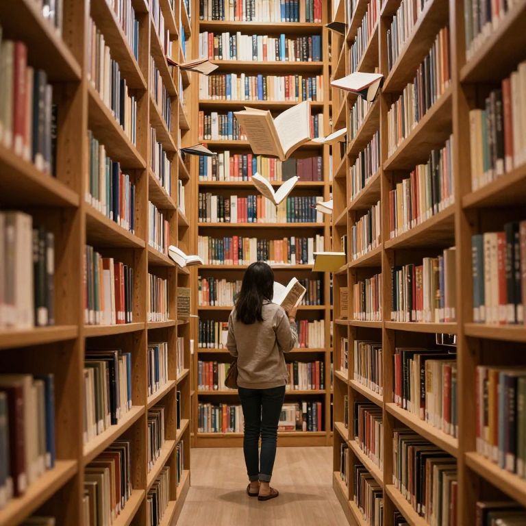 A library where books breathe and fly, each story taking wing from the shelves only when read aloud.