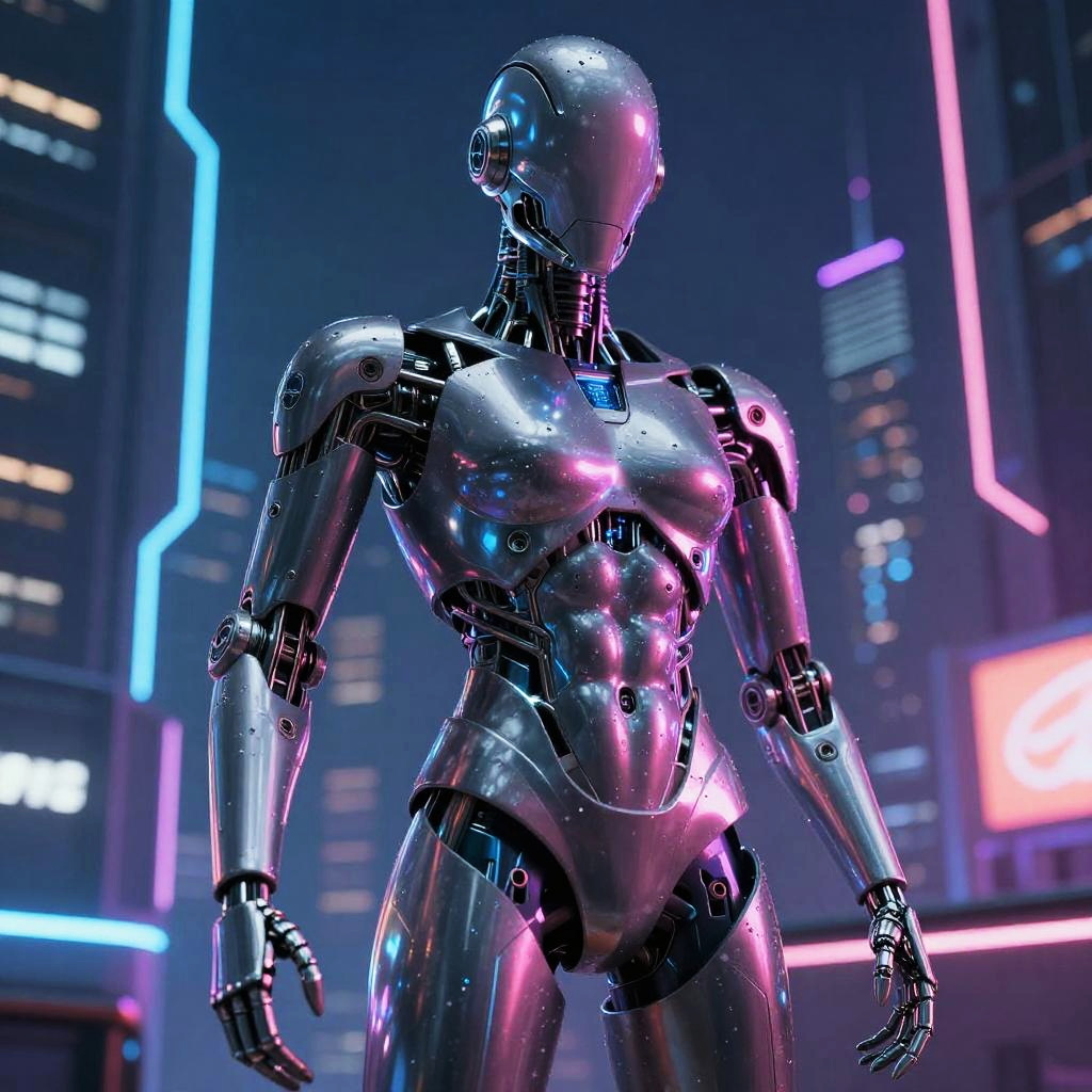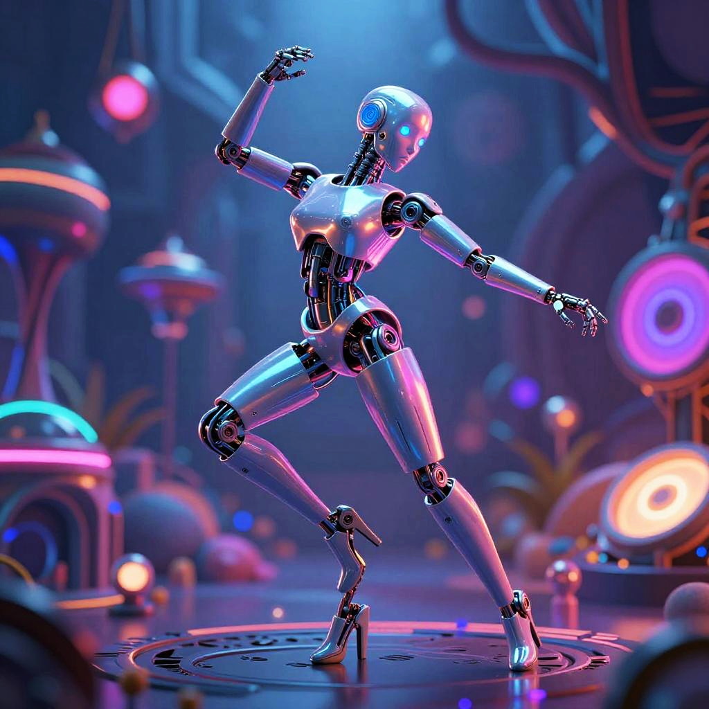 Surreal and psychedelic artwork of a neon robotic dancer in a vibrant DMT-inspired background, ultra-detailed with realistic light reflections, cinematic imaginative lighting, photorealistic in style, rendered in C4D and Octane
