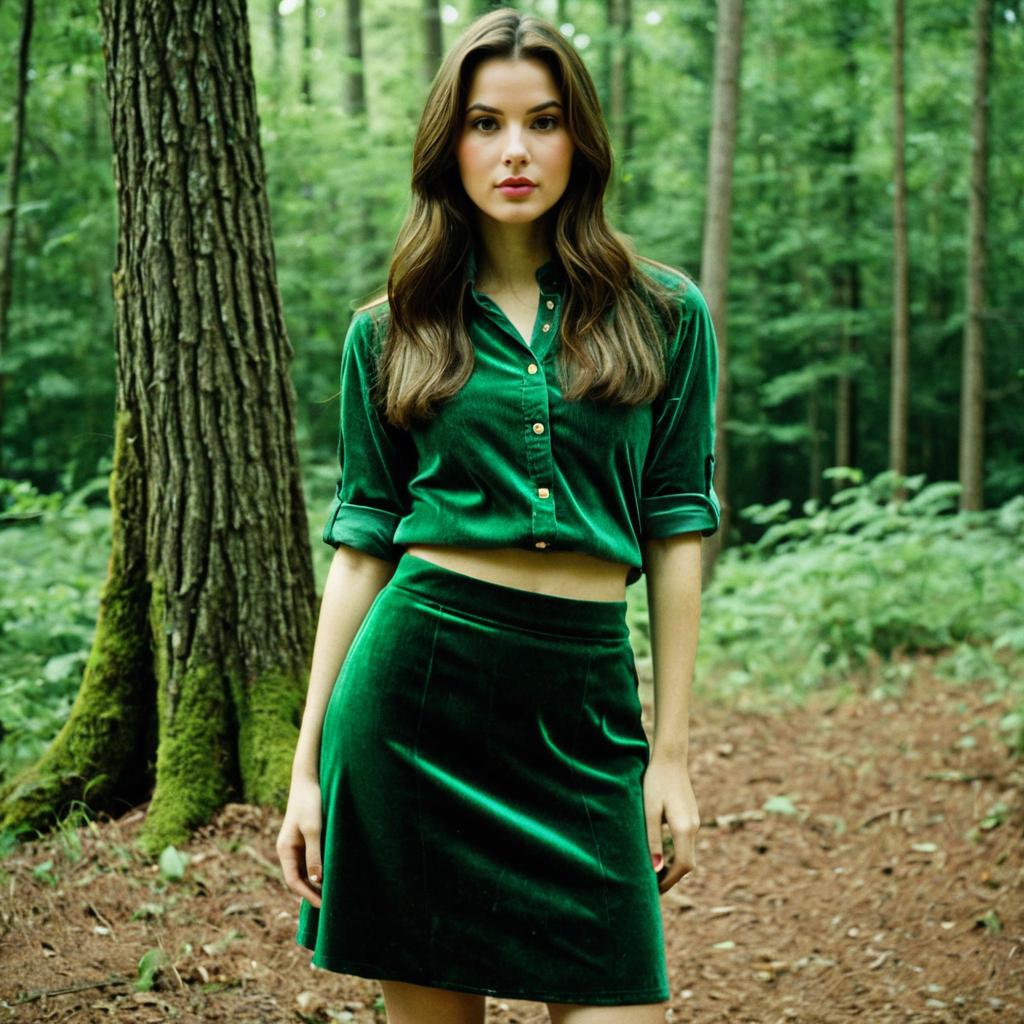 Girl in Green Velvet Skirt in Nature
