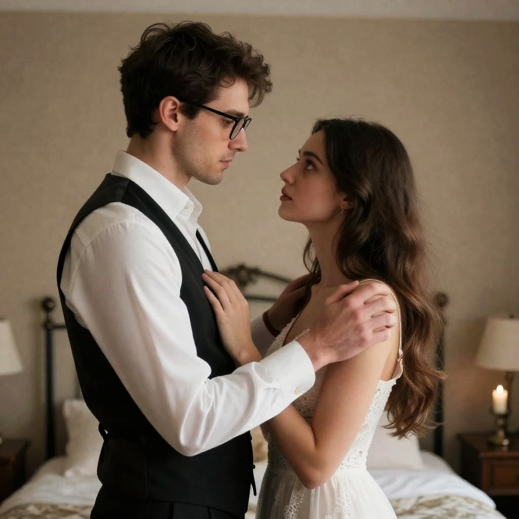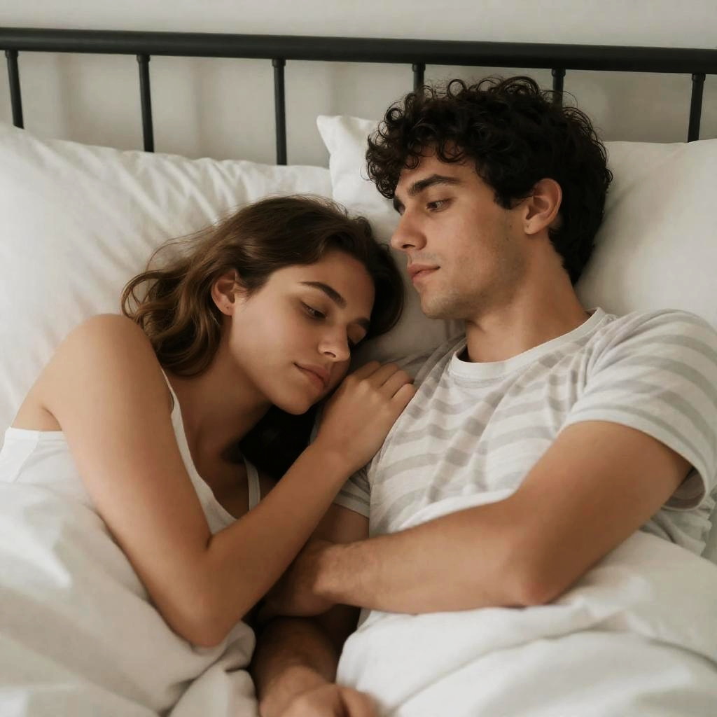 Intimate Bedroom Scene with Three People