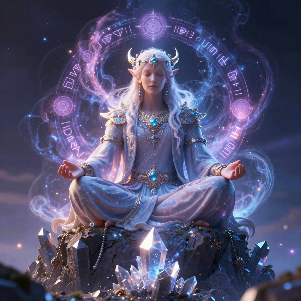Kalashtar Wizard Meditating on Crystal Peak