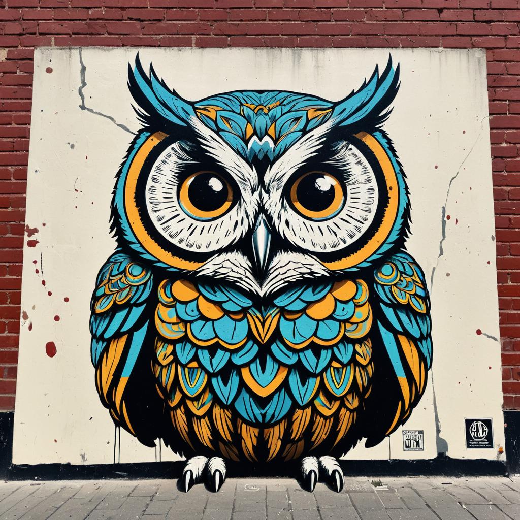 A vibrant artwork blending fauvism and modernism by Henri Matisse and Georgia O'Keeffe, featuring a cute baby owl, surrealistic colors and intricate textures