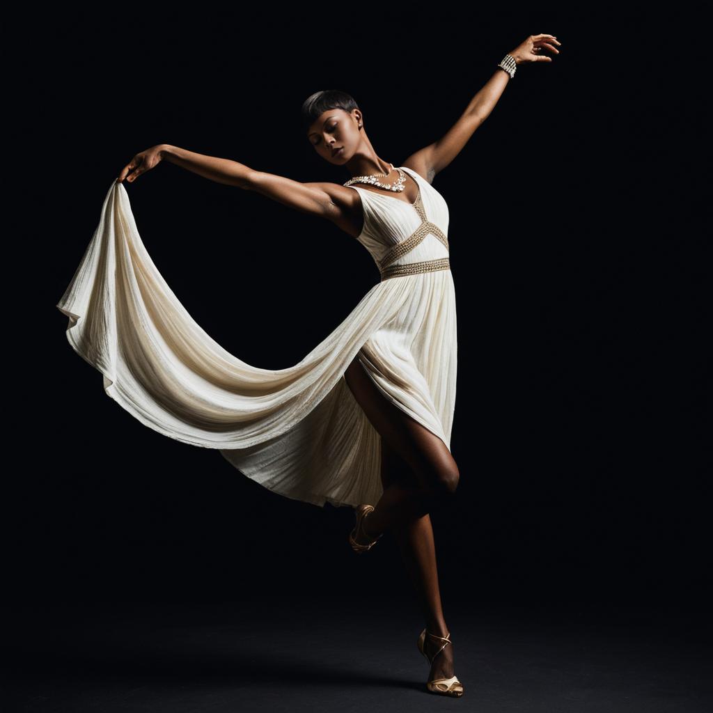 Side profile of an elegant Black female ballet dancer wearing a white tutu and leotard, posed against a minimalist pink background. The image uses vibrant teal neon lighting that highlights her graceful form and delicate curves, inspired by the style of Edgar Degas ballet series with a modern, pastel, and minimalist approach.