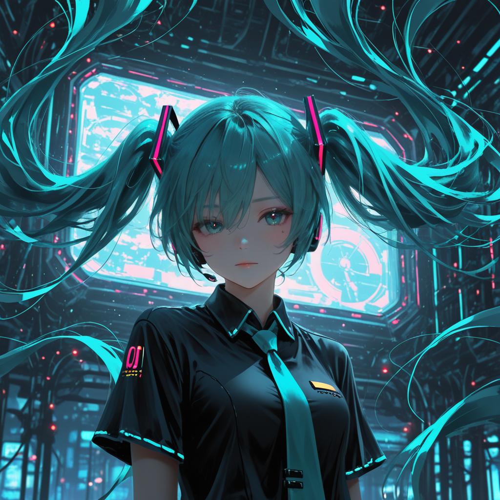 Vibrant Cyberpunk Miku in Sci-Fi City