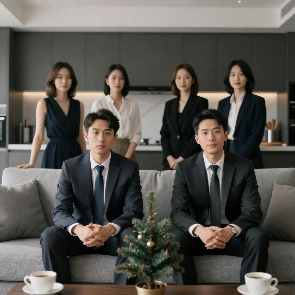 Group of six people sitting on grass in a garden. Four women and two men, dressed in business attire, drinking from glasses. Red and white cooler, greenery in background. Casual, relaxed posture, engaging in conversation. Man in blue shirt and tie, woman in pink jacket, woman in black dress, others in black and white outfits. Background includes trees and a fence.
