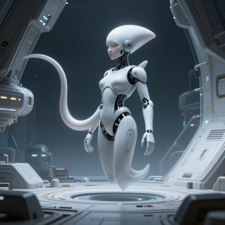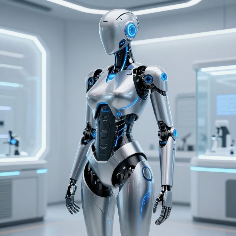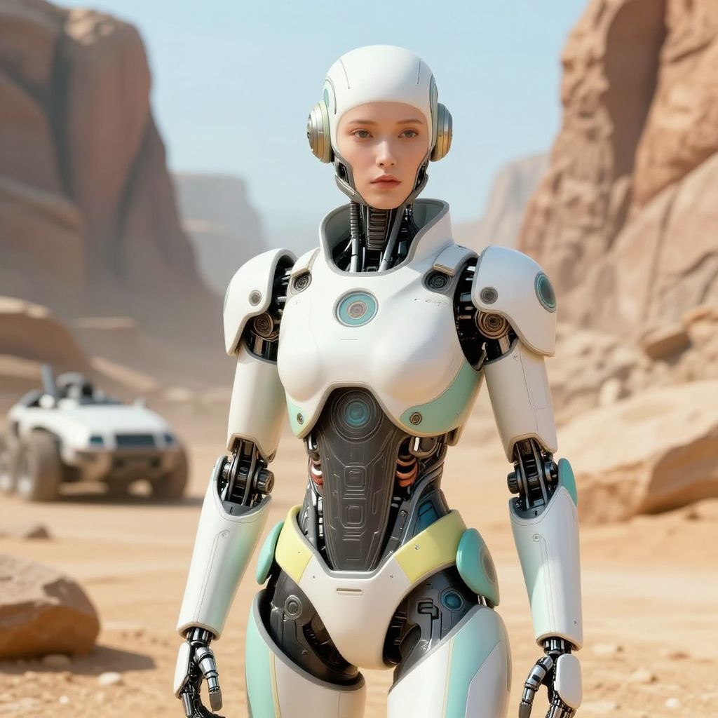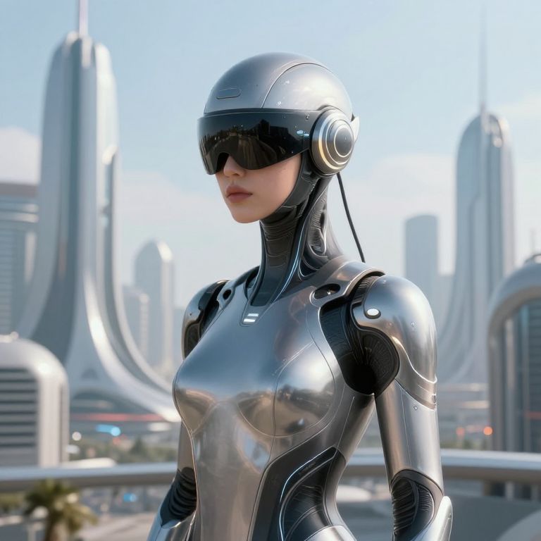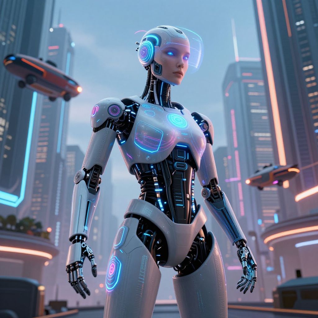 Futuristic Female Robot in Neo-Futuristic City