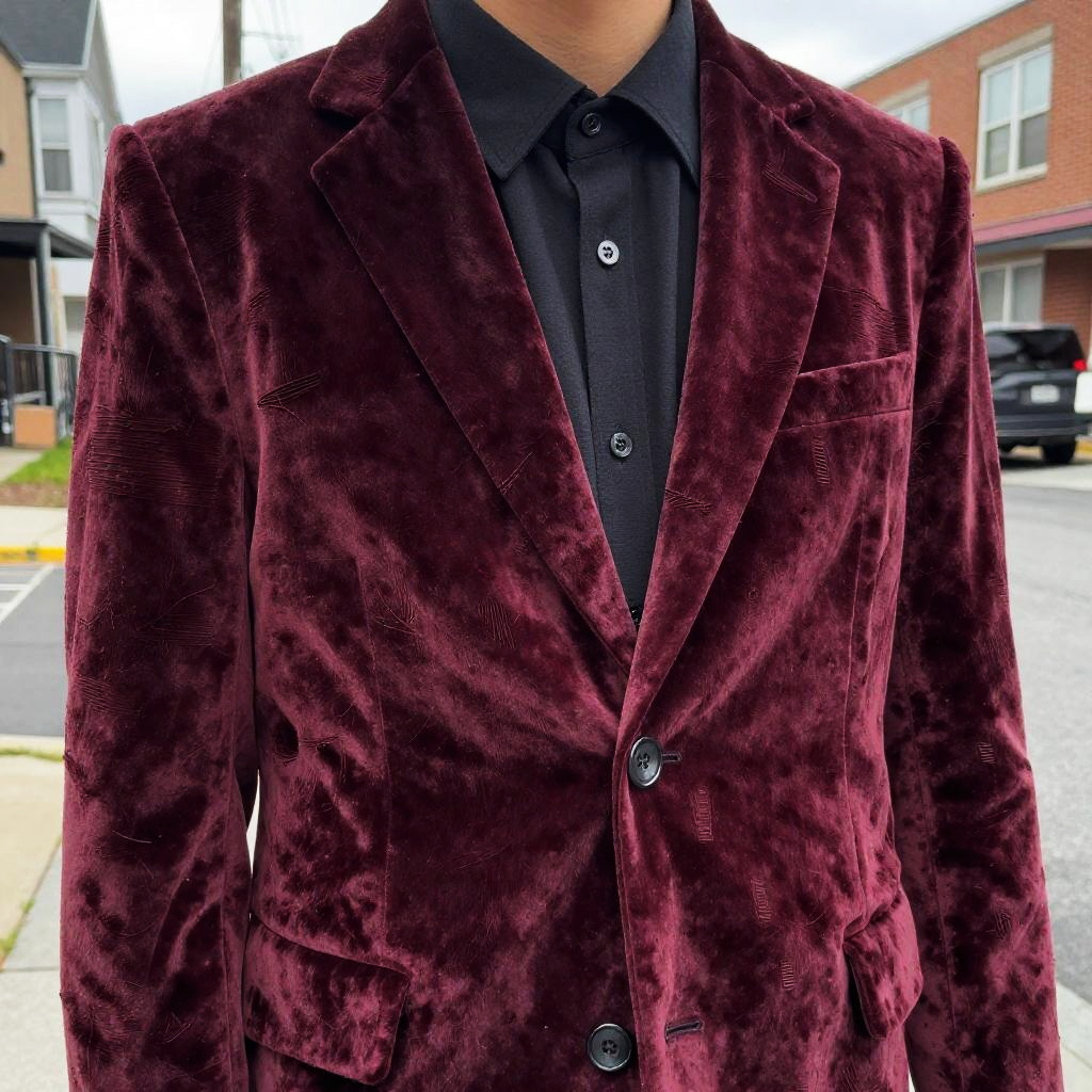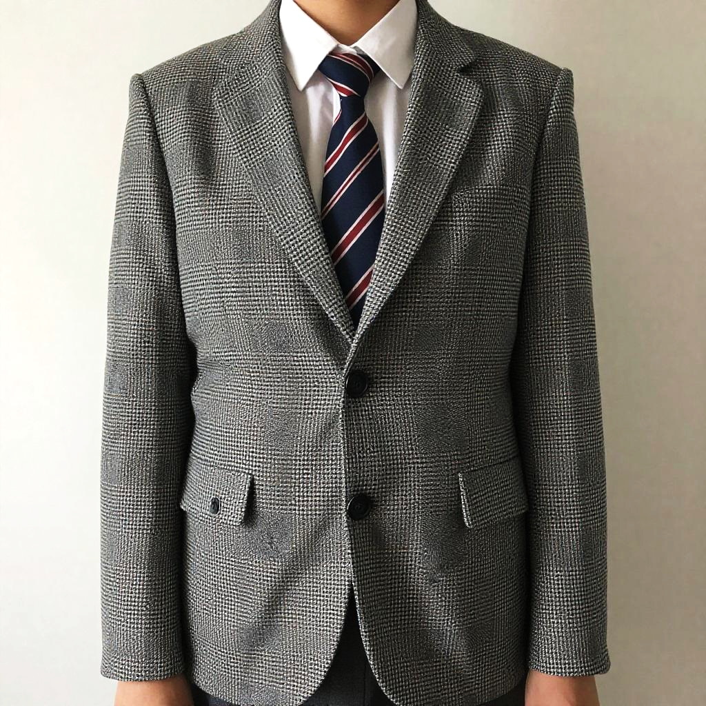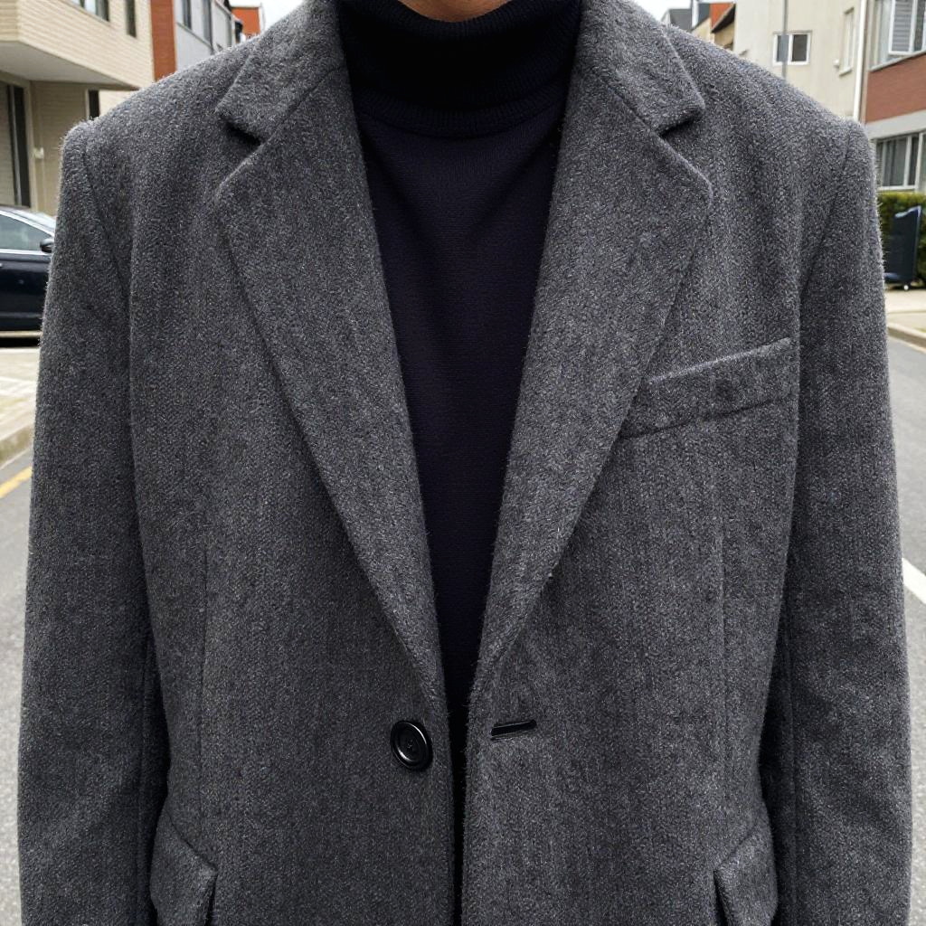 Person in a charcoal gray wool blazer, styled with densely textured haptic surfaces, unconventional layering, in the style of Joan Miró, suburban ennui, pigeoncore aesthetic, flickr style