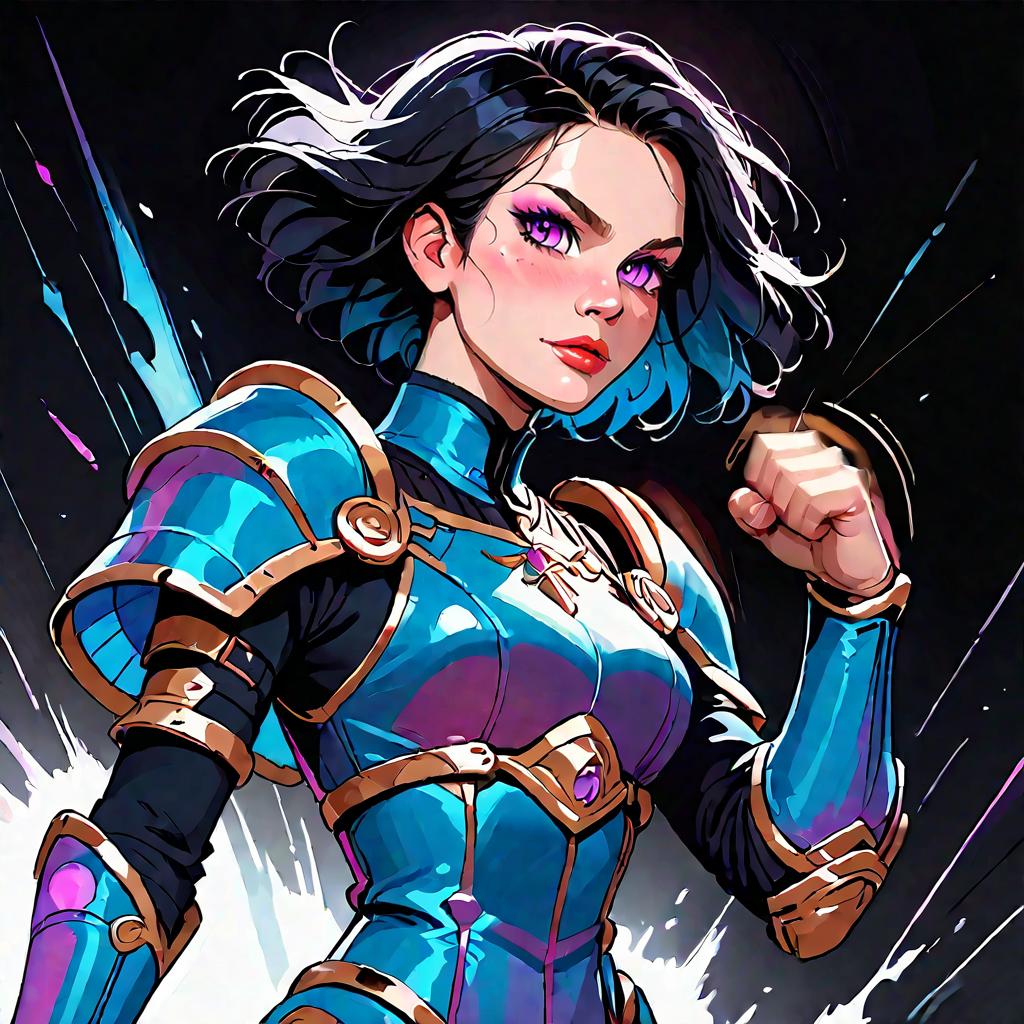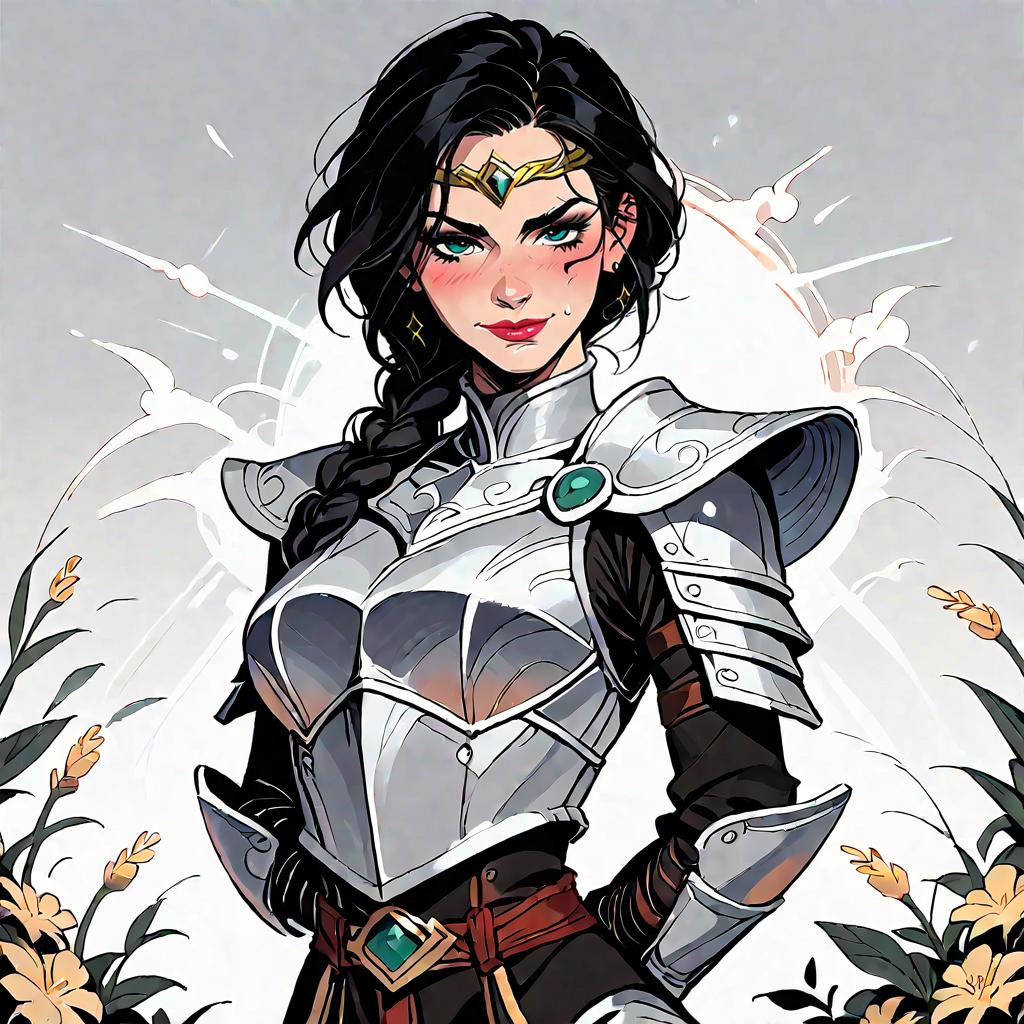 Score_9, score_8_up, score_7_up, source_anime, nsfw, ultra details, masterpiece, 4k, best quality, hires, 1girl, fox girl, brown haired fox girl, long hair, blue glowing eyes, armor, knight, commanding, army in background, holding flag, battlefield