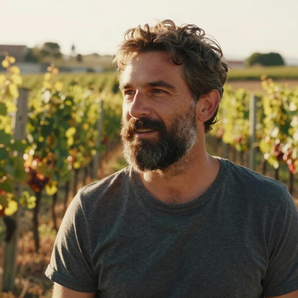 Realistic candid shot of a man with a salt and pepper beard and relaxed demeanor, taken in historic library interior with warm lamplight