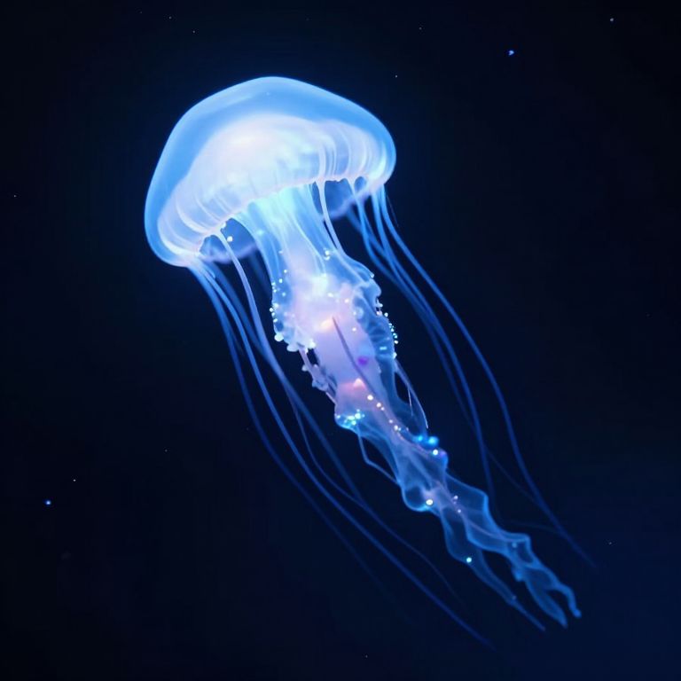 A colossal jellyfish made of liquid moonlight drifts across a sky without stars, trailing bioluminescent threads that weave the dreams of sleeping gods.