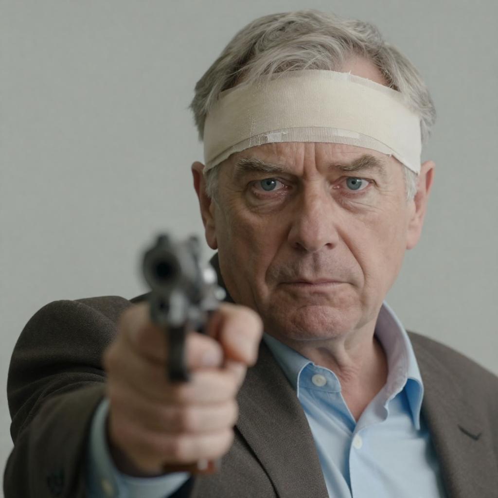 Middle-aged Man Aiming Revolver in Bar