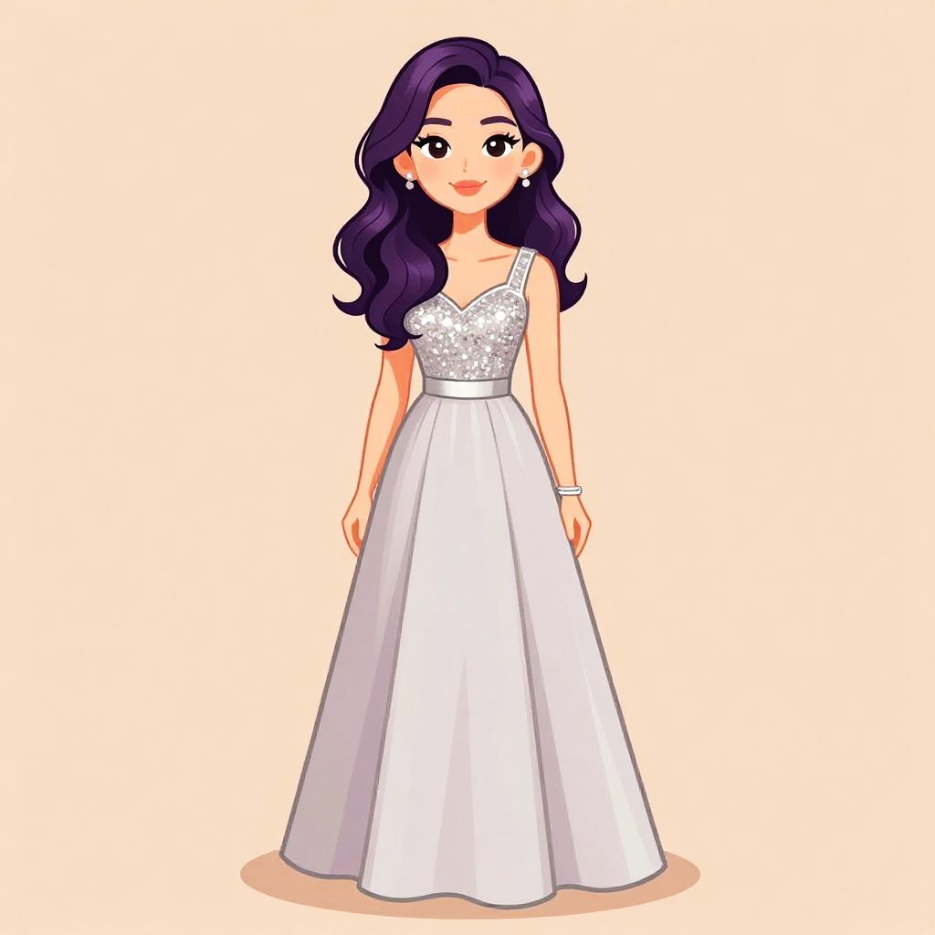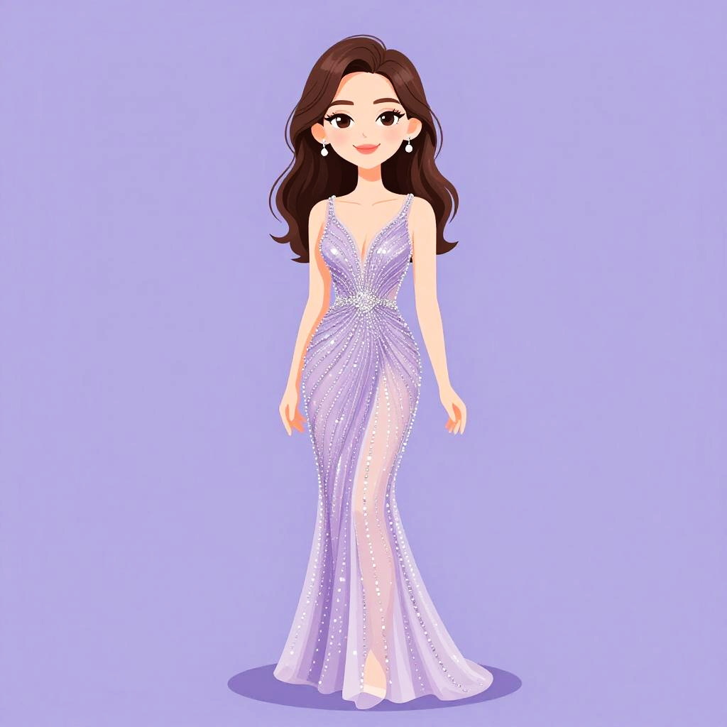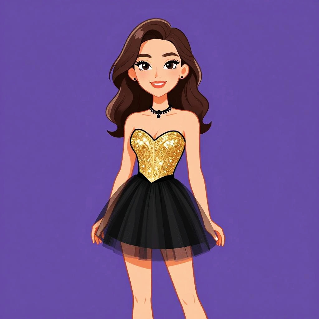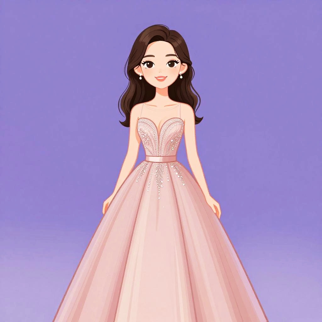 Woman with pretty face and pretty hair. Woman, evening glamour, metallic gold ball gown, sheer bodice with gold lace embroidery and applique, deep V-neckline, sleeveless, full pleated skirt, shimmering fabric, floor-length, gold dangling earrings, simple updo hairstyle, photo studio with a painted backdrop resembling a frosted tree scene. --sref 1467