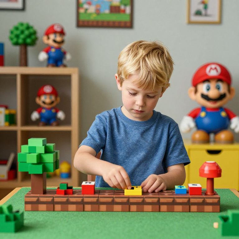 Joyful Boy Building LEGO Tower