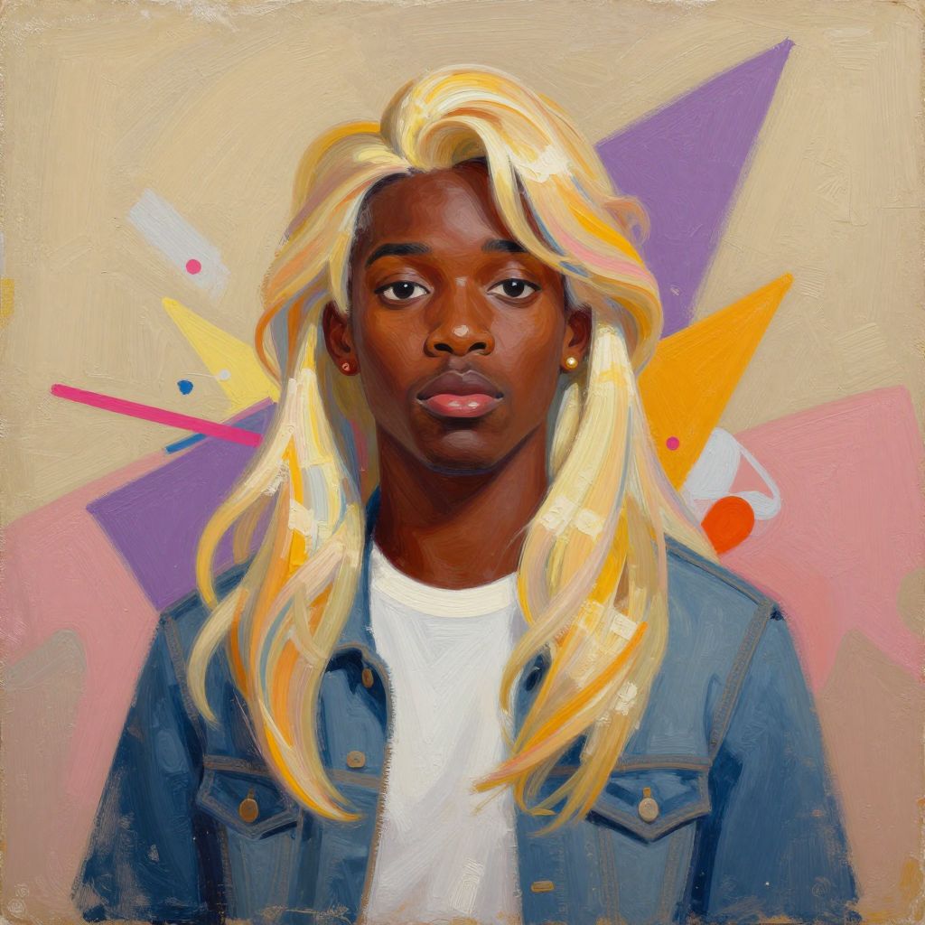 Elsa Retro style oil painting of black man, colourful painting, brush strokes, Texture backdrop painting, Creative chaos structure,