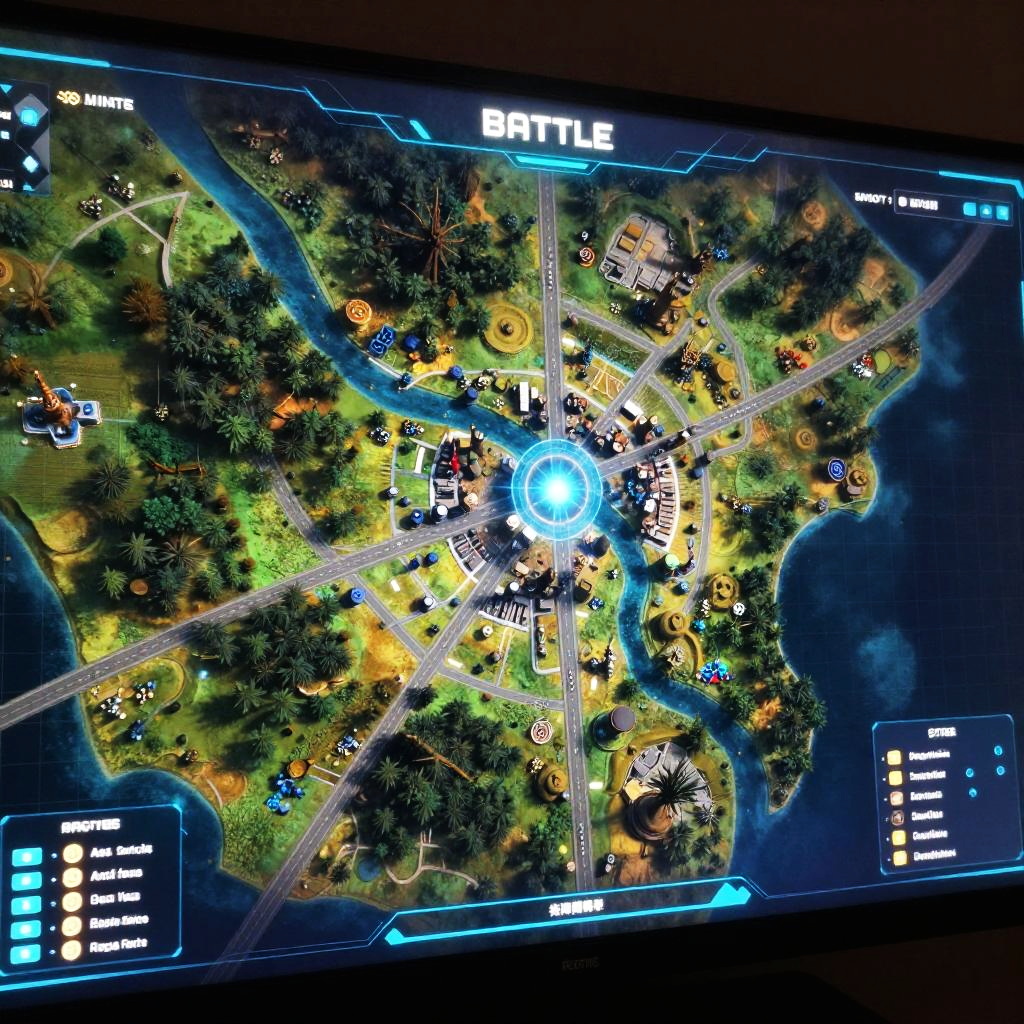 Futuristic Holographic Battle Map Interface