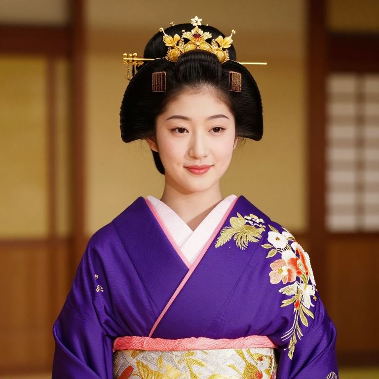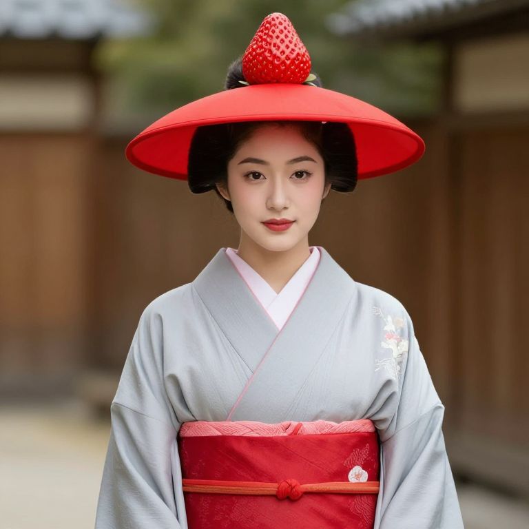 Woman in Grey Kimono with Strawberry Hat