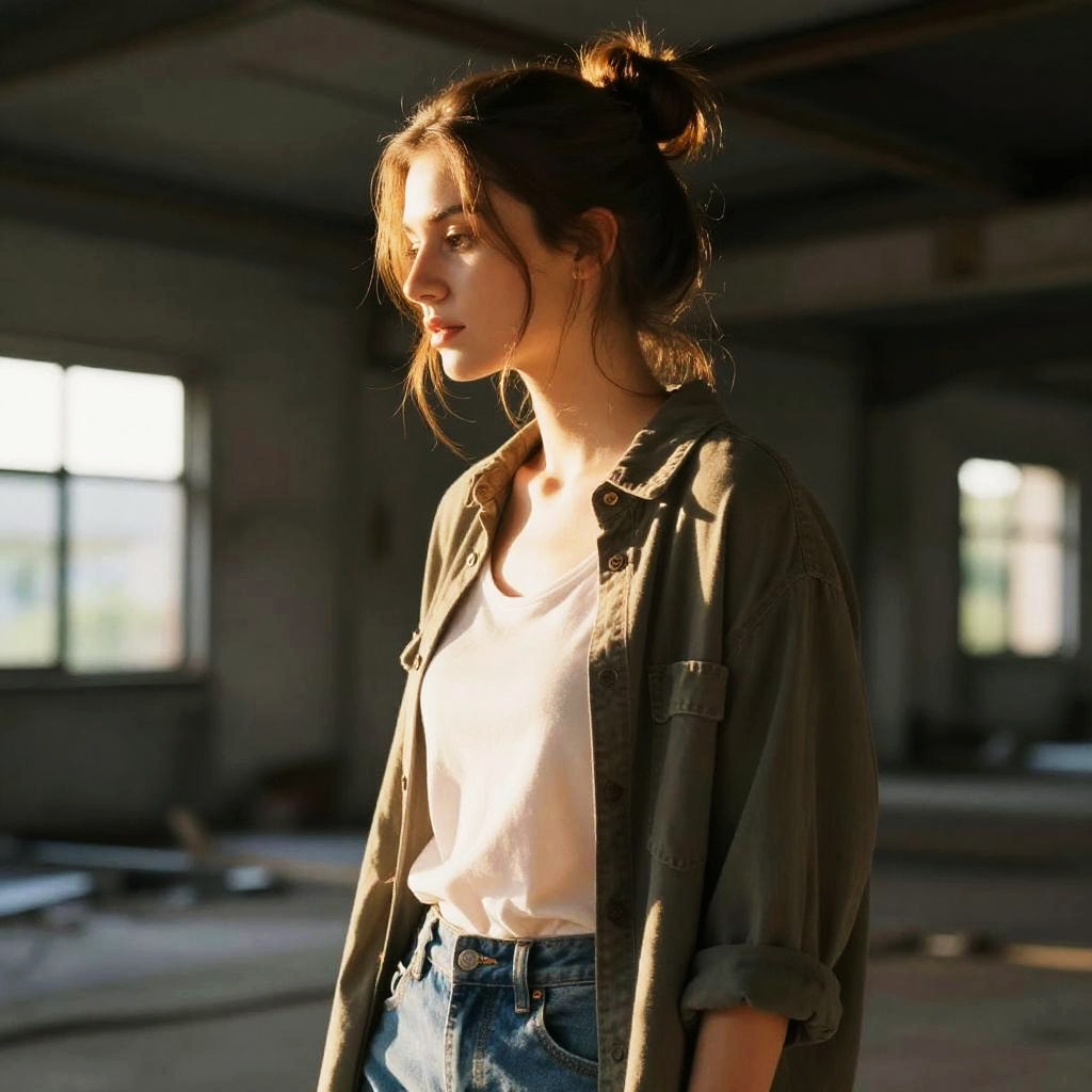 Mature Male Loose Bun Editorial Portrait