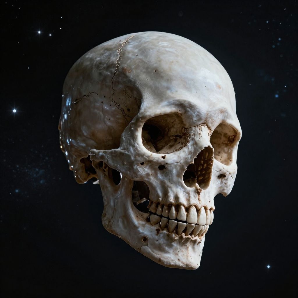 Photorealistic: weightless ((cosmic-skull)), floating, unsupported, in outerspace, space, cosmos, only stars in the background