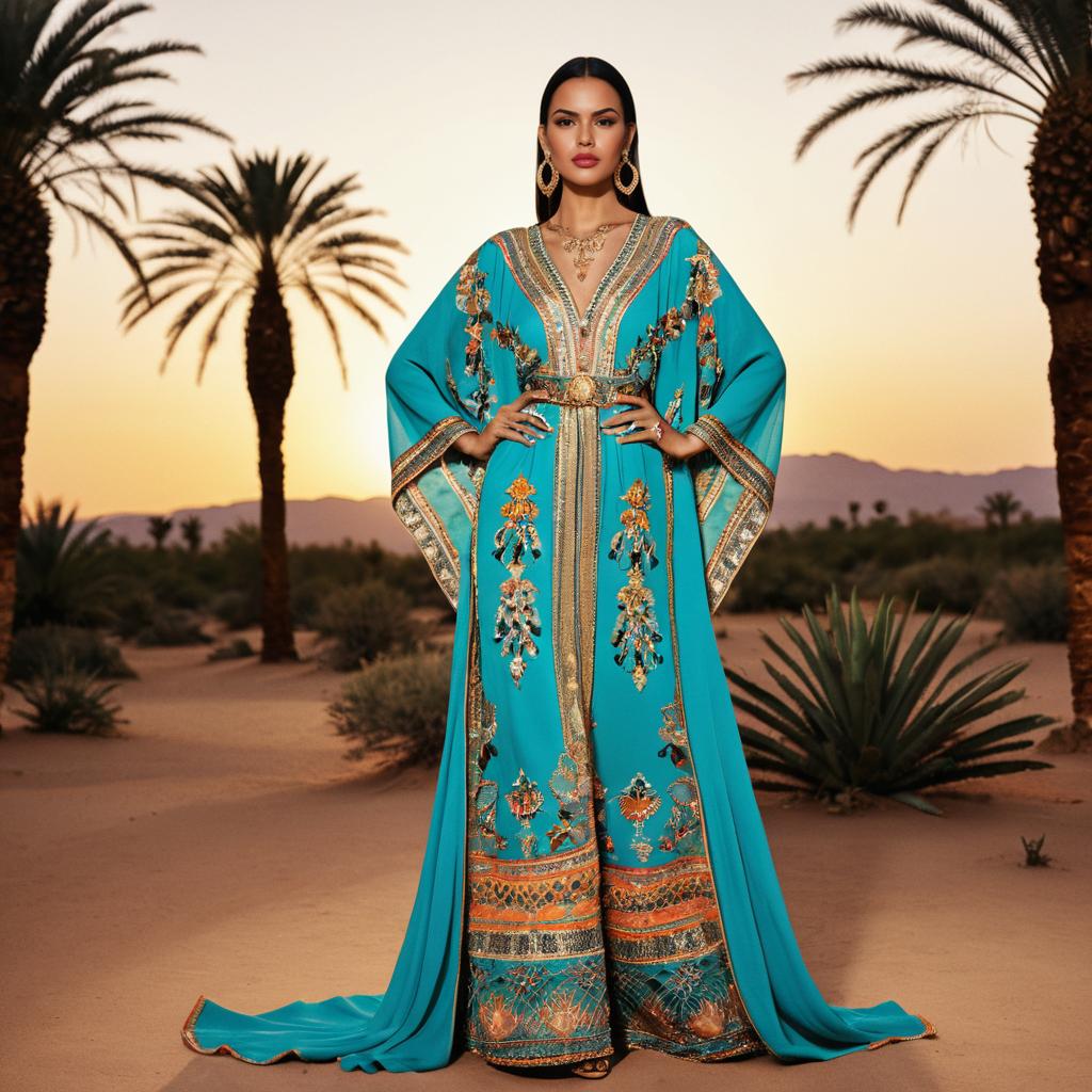 Moroccan Model in Embroidered Kaftan at Desert Sunset