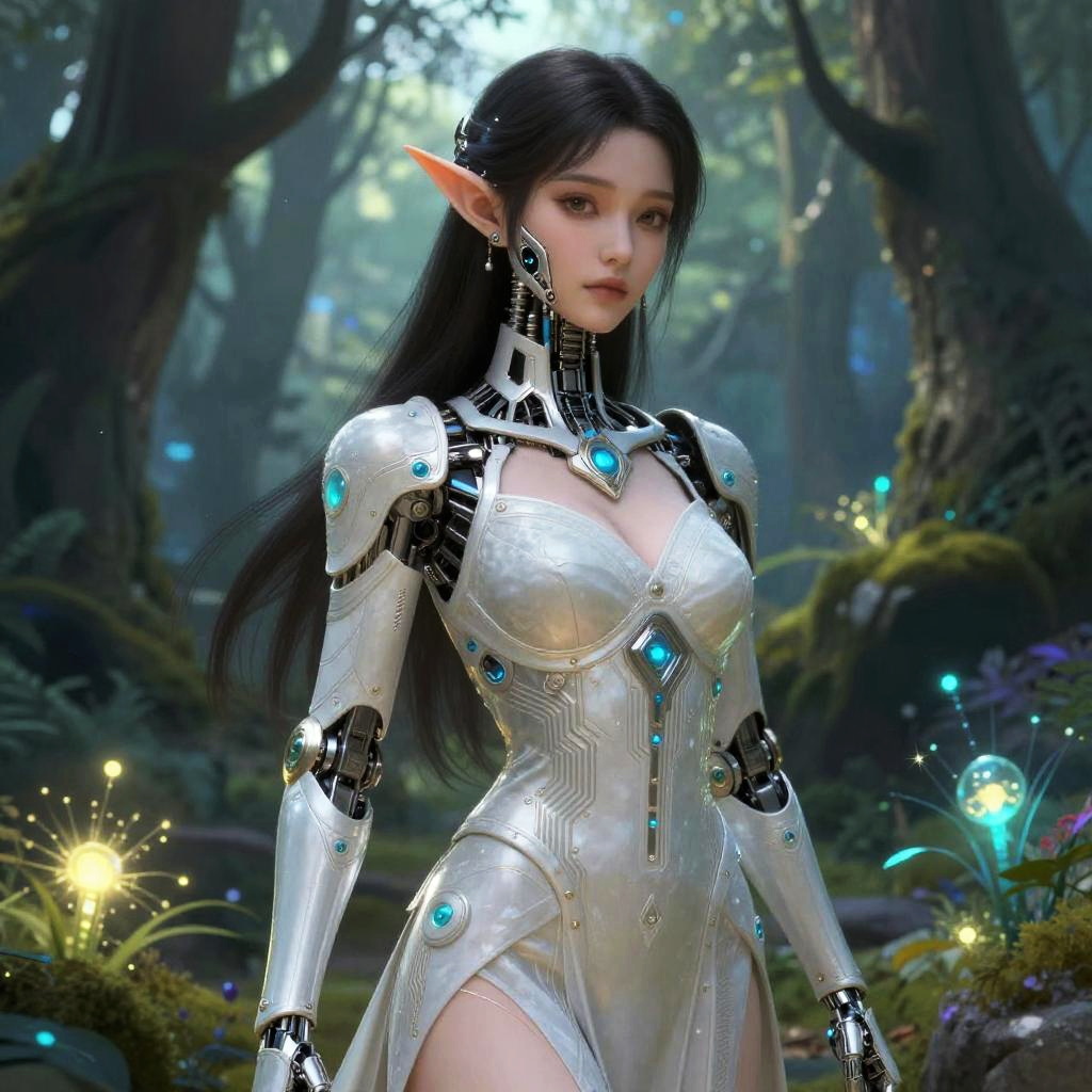 Elegant Futuristic Fairy in Cyberforest