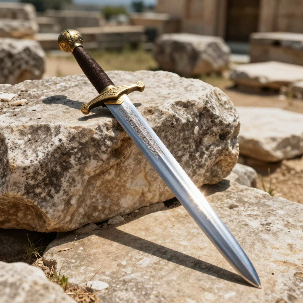 Ancient Greek Sword on Stone Ruins
