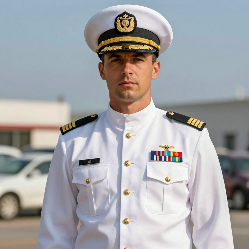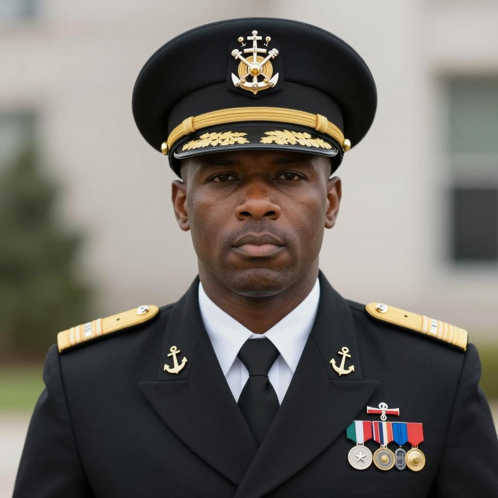 Navy Officer Portrait in Dark Uniform